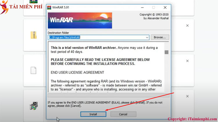 1. Cửa sổ Winrar xuất hiện chọn Install để cài đặt.